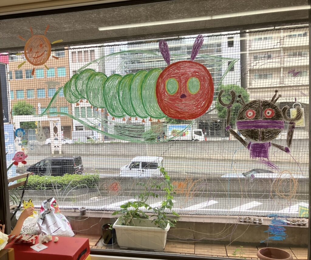 これは以前子どもたちとみんなで窓にお絵描きした時の写真です🎨