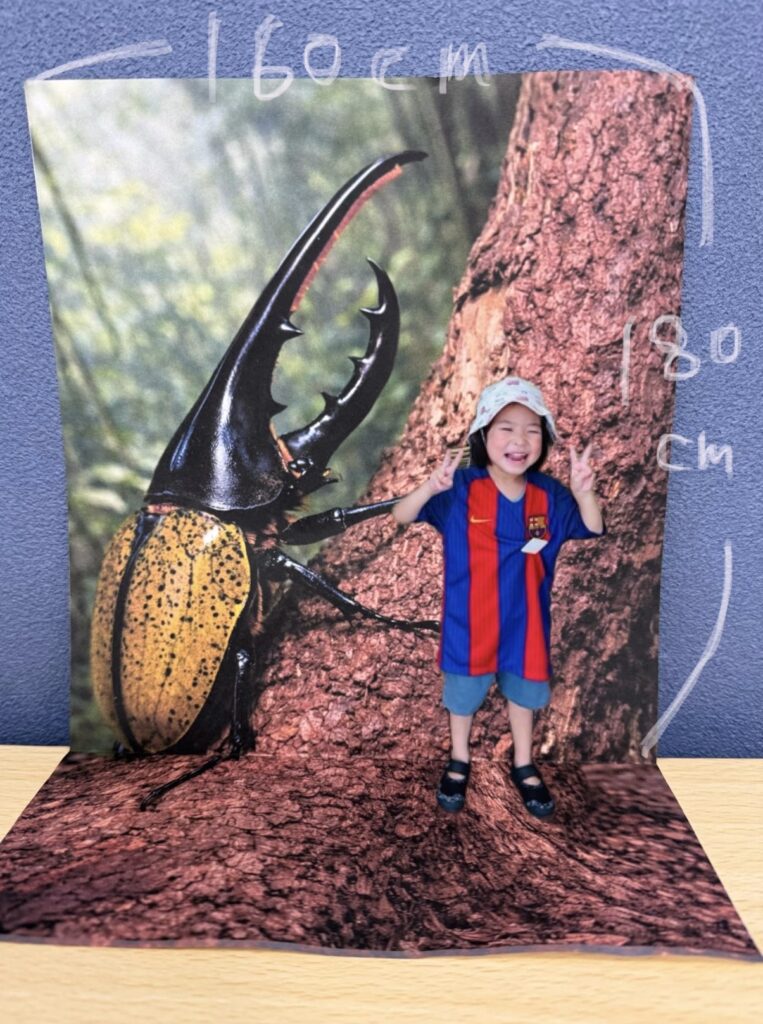 撮影スポット用のパネルは、とにかくインパクト重視で、子どもたちが「うわー!」って喜んでくれそうな、大きなヘラクレスオオカブトを作りたい!!と思い、