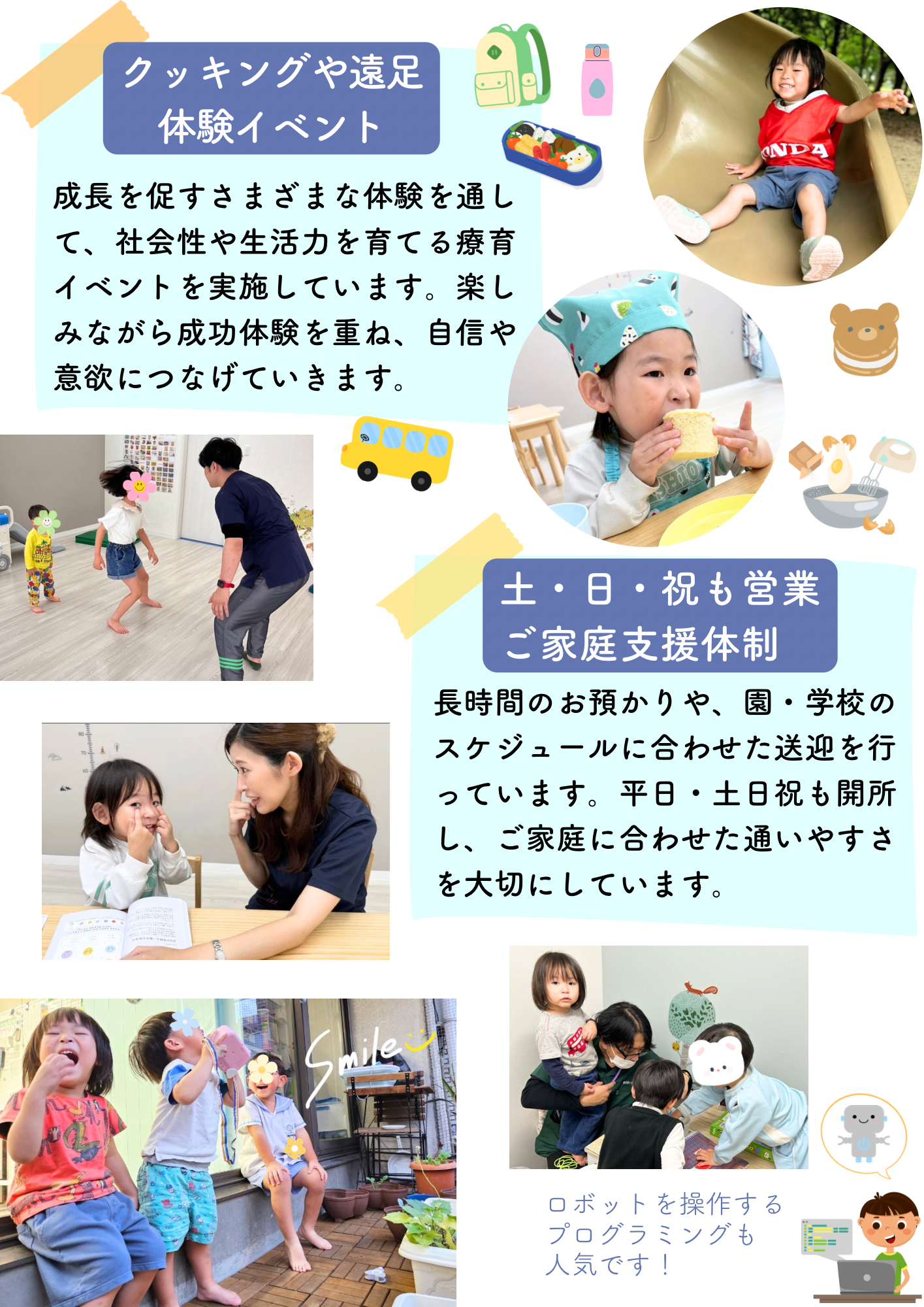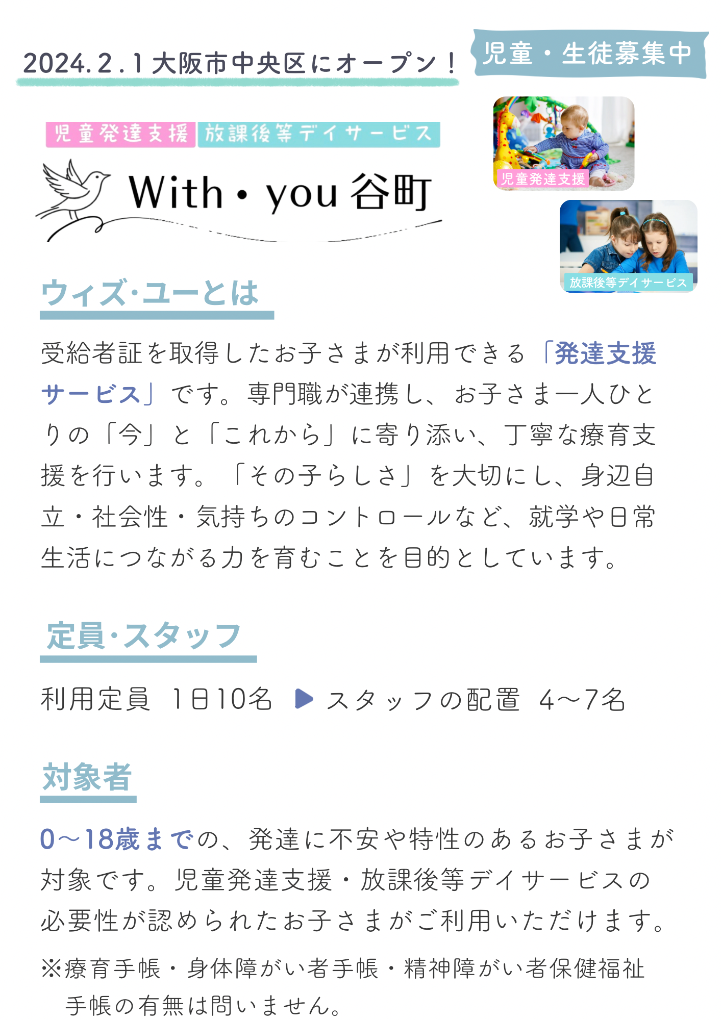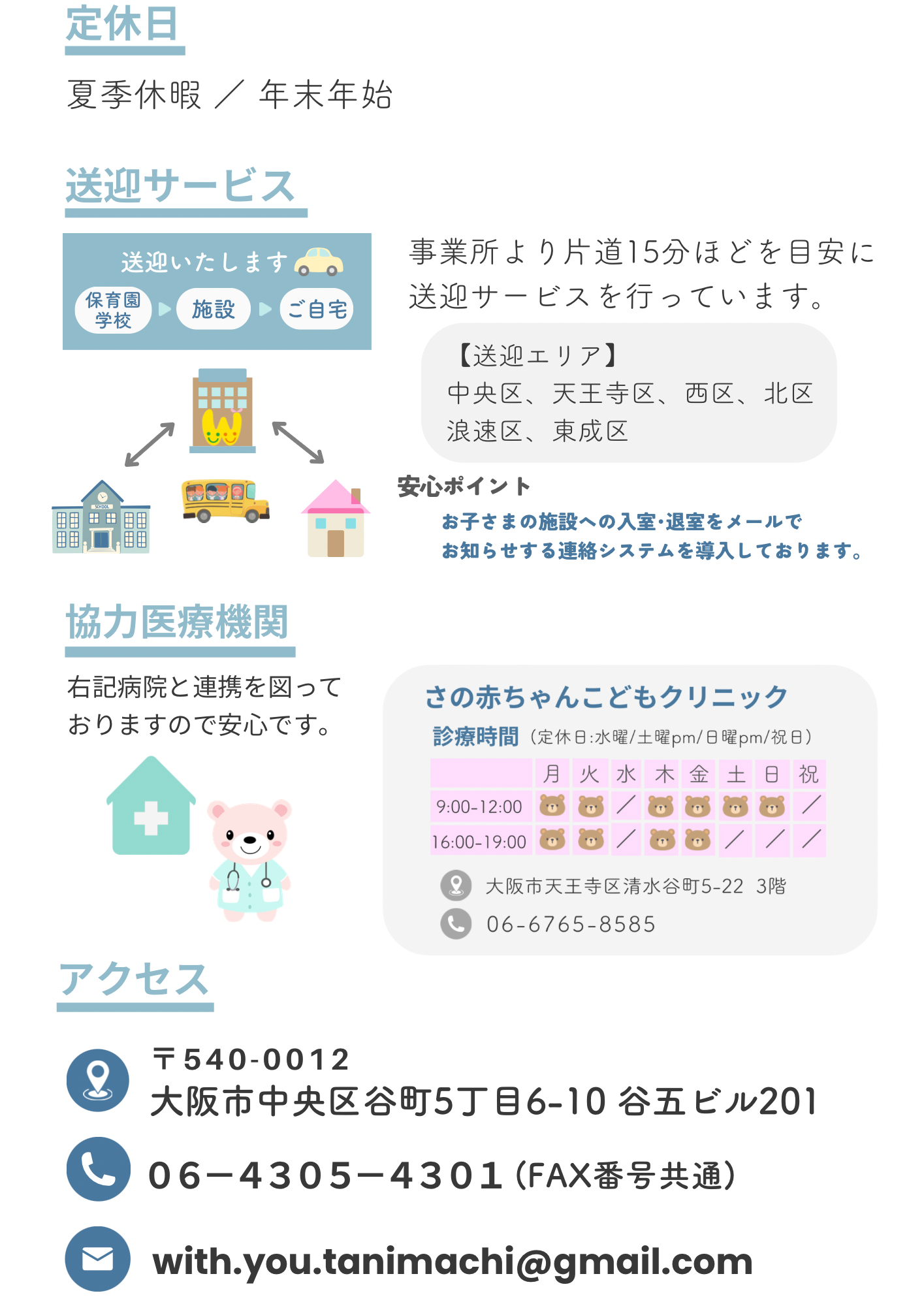 現在は大阪市中央区にて児童発達支援施設・放課後等デイサービスを2社運営し、